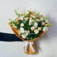 Корзина кофейных роз, эустом и гвоздик