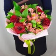 Букет из красных роз и альстромерий