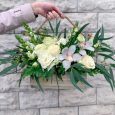 Коробка с клубникой, вишней и розами