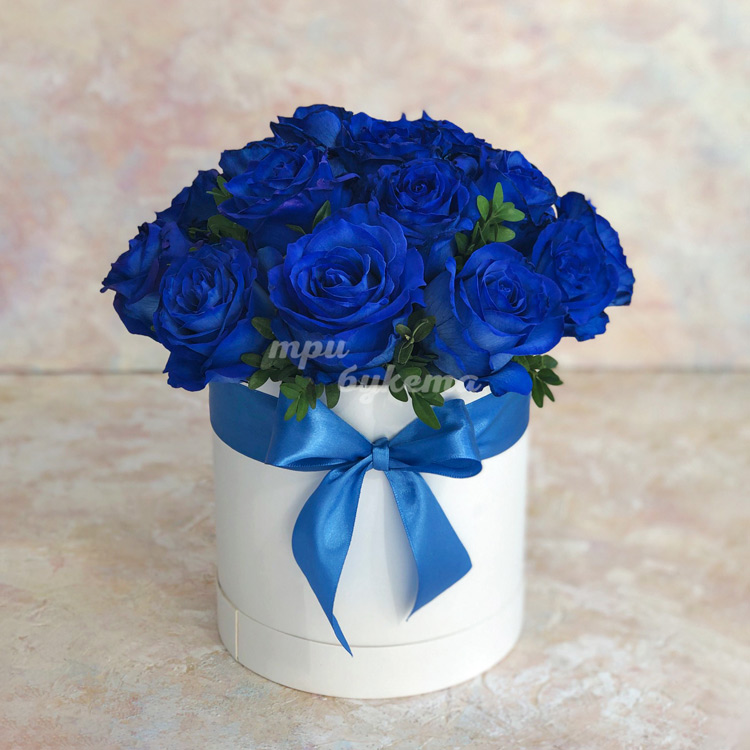 17 синих роз в шляпной коробке
