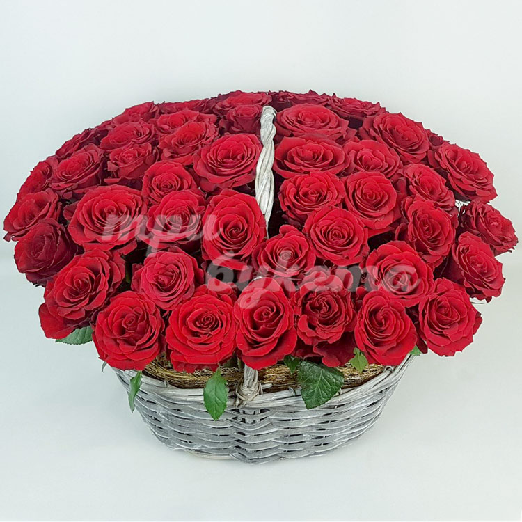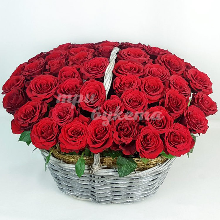 51 красная роза в корзине