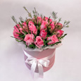 Белые альстромерии и розы в коробке