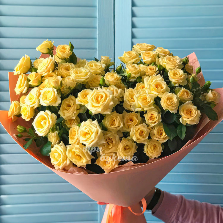 - Желтые кустовые розы, 15 шт.