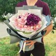 Букет из 3 белых пионов и гортензии