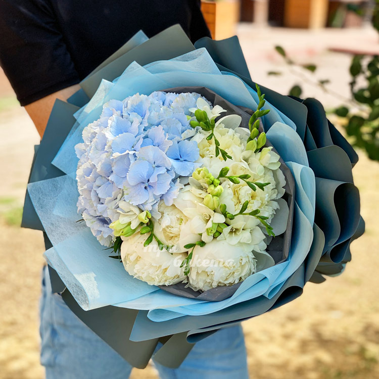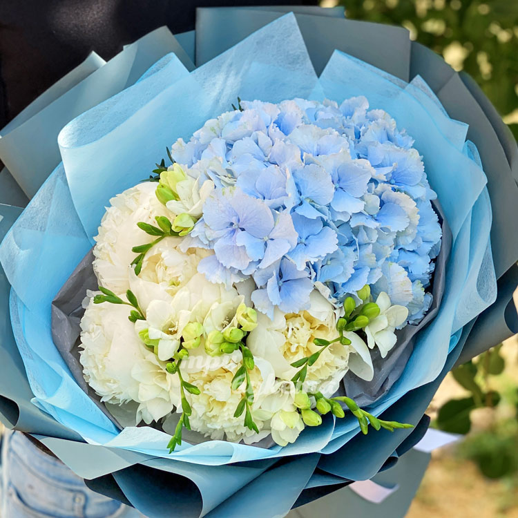 Букет из гортензии и белых пионов