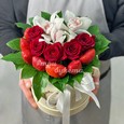 Букет из клубники и тюльпанов
