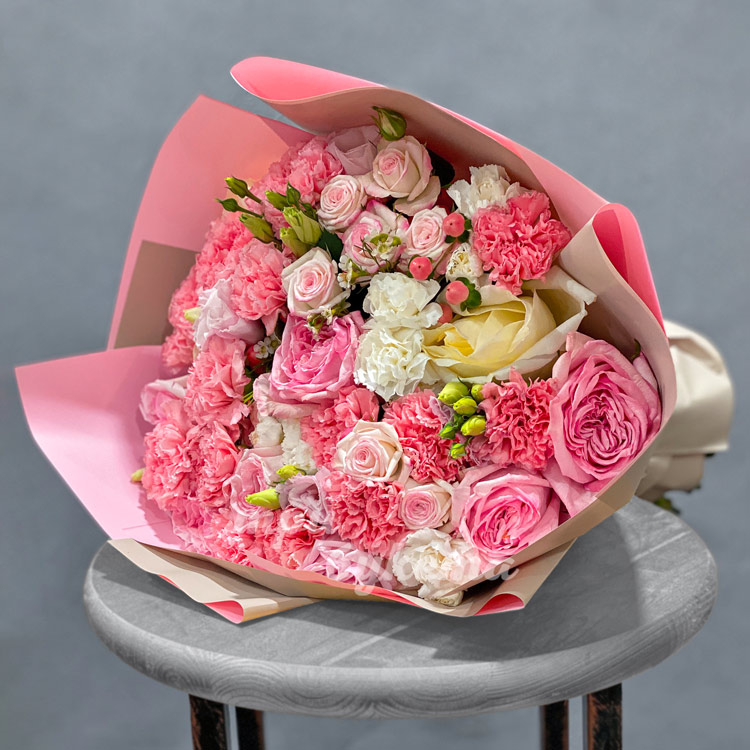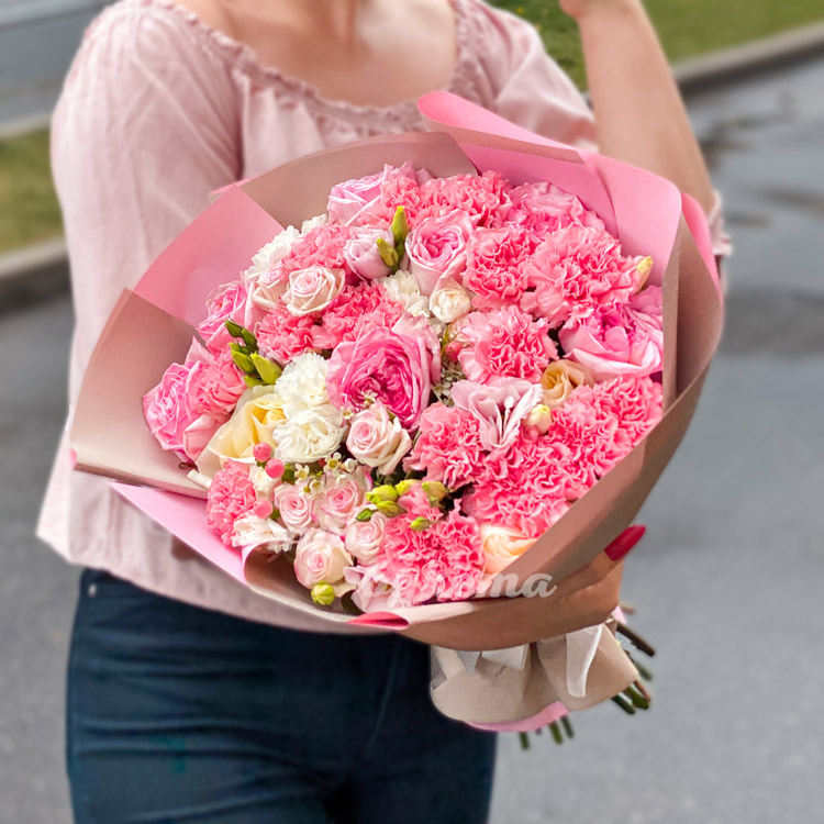 Букет из розовых и белых гвоздик