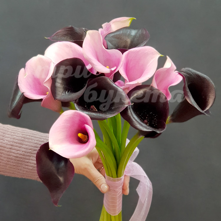 Букет из розовых и черных калл