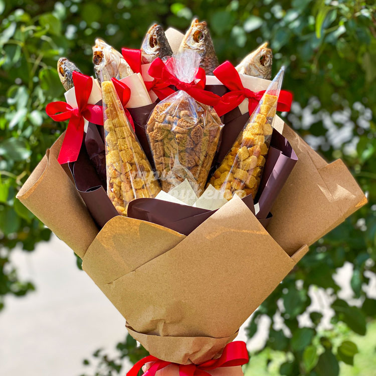Букет на 23 февраля с рыбой и сухариками