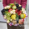 Букет светло-розовых роз и клубники