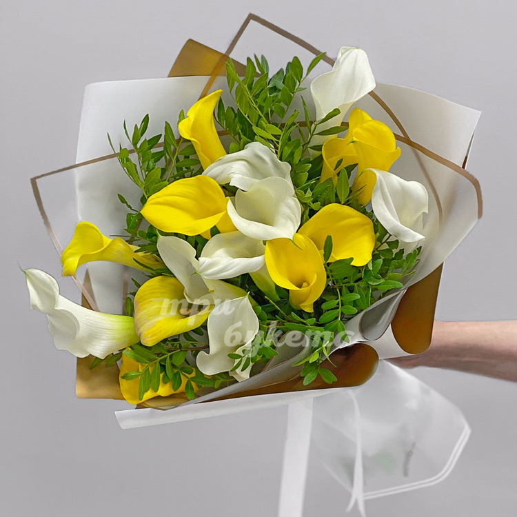 Букет желтых и белых калл