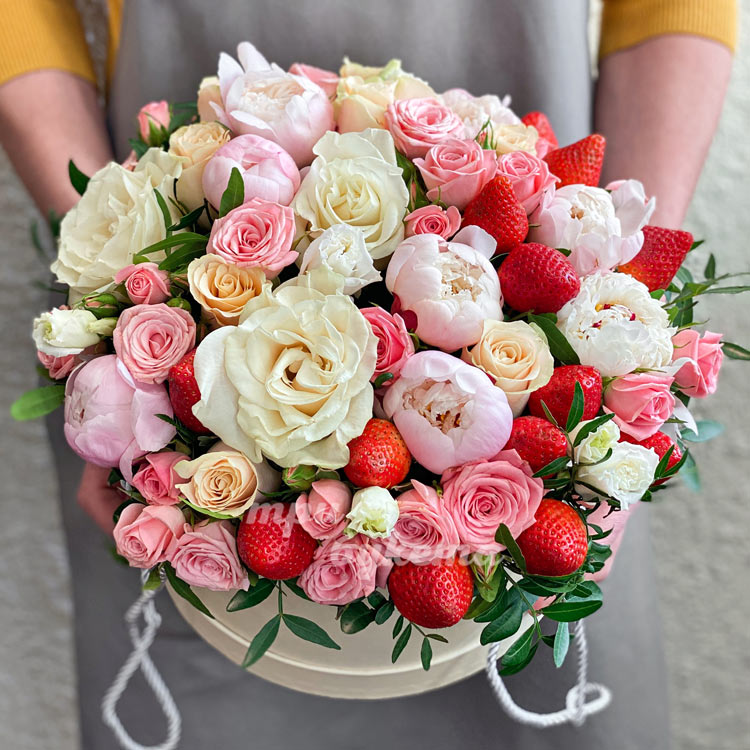 Композиция из клубники и цветов