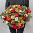 Композиция из роз, гвоздик и хлопка