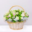 Коробка белых эустом и розовых гортензий