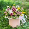 Коробка-сердце с хризантемами и розами