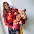 Коробка желтых французских роз с тюльпанами