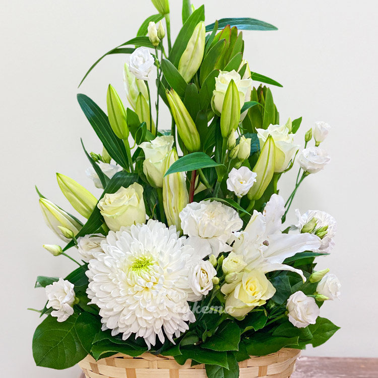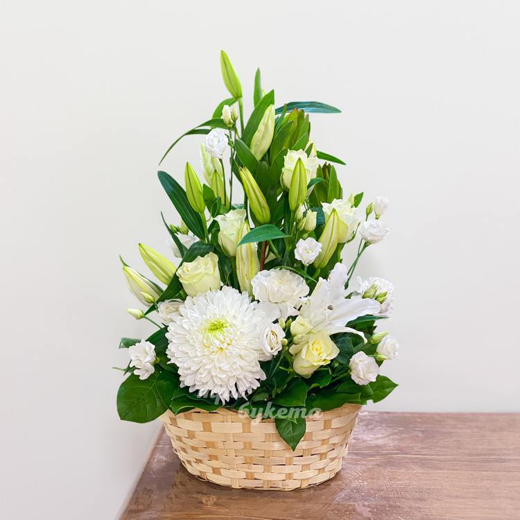 Корзина белых лилий с пышной хризантемой