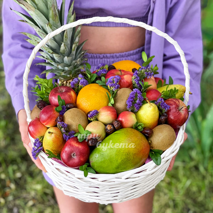 Нектарины, манго и ананас в корзине