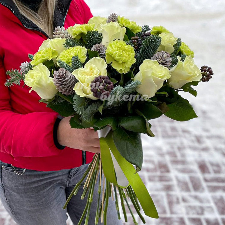 Новогодний букет из белой розы