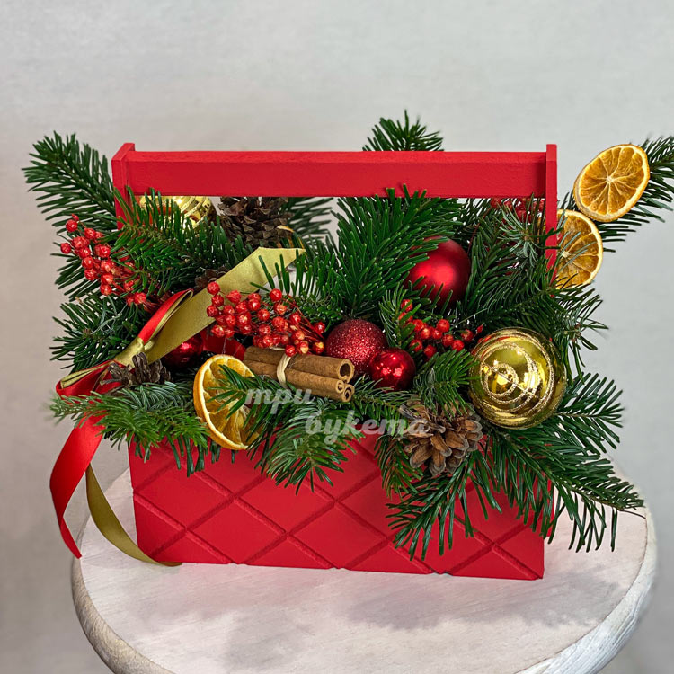 Новогодний ящик с красным декором