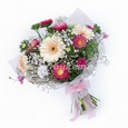 Розовый букет кустовых роз и гипсофилы