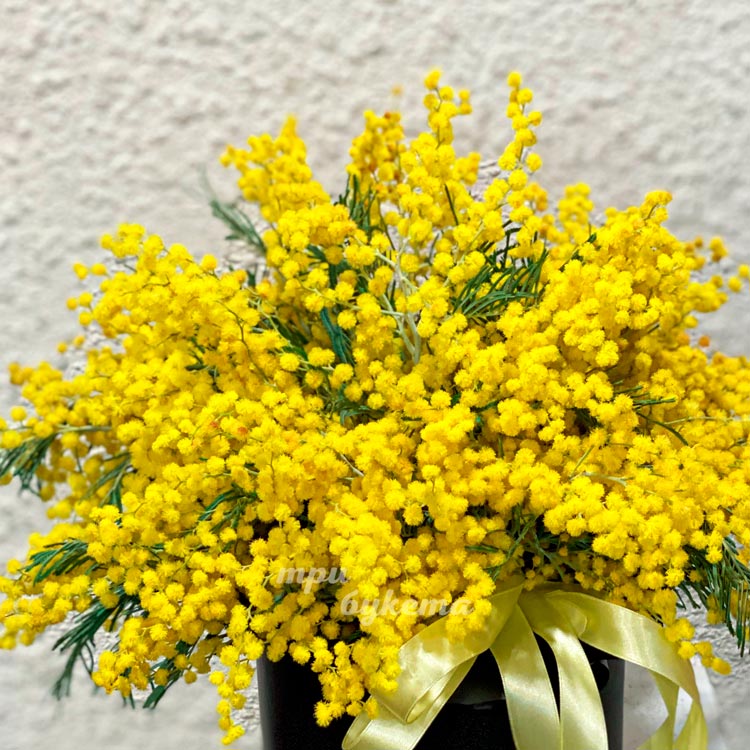 Яркая мимоза в шляпной коробке